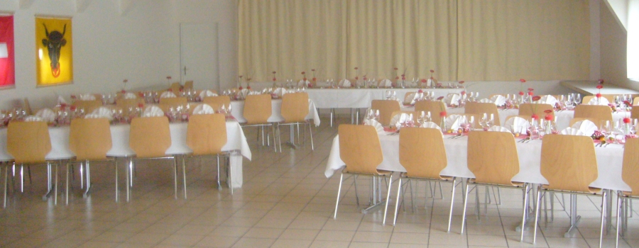 Unser grosszügiger Saal bietet Platz für 100 Personen. Das Lokal kann für private Anlässe gemietet werden. Die gut eingerichtete Küche sowie Kühlbuffet, Kaffeemaschine, Abwaschmaschine, Geschirr, Gläser, Tellerwärmer, Steamer etc. können dabei verwendet werden. Gerne verwöhnen wir Sie mit unseren Köstlichkeiten aus Küche und Keller. Auf Wunsch können Sie aber auch einen eigenen Caterer nach Wunsch engagieren.